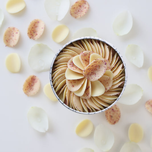 花びらをイメージしたペタルシリーズは、身体に優しい素材にこだわり合成着色料を使用しない素材本来の優しい色合いです。独自の特許製法により本物の花びらのように薄く仕上げたペタルチョコレートは、パリっとした食感と口の中に入れた瞬間から優しい口どけで、素材本来の美味しさと香りをご堪能いただけます。