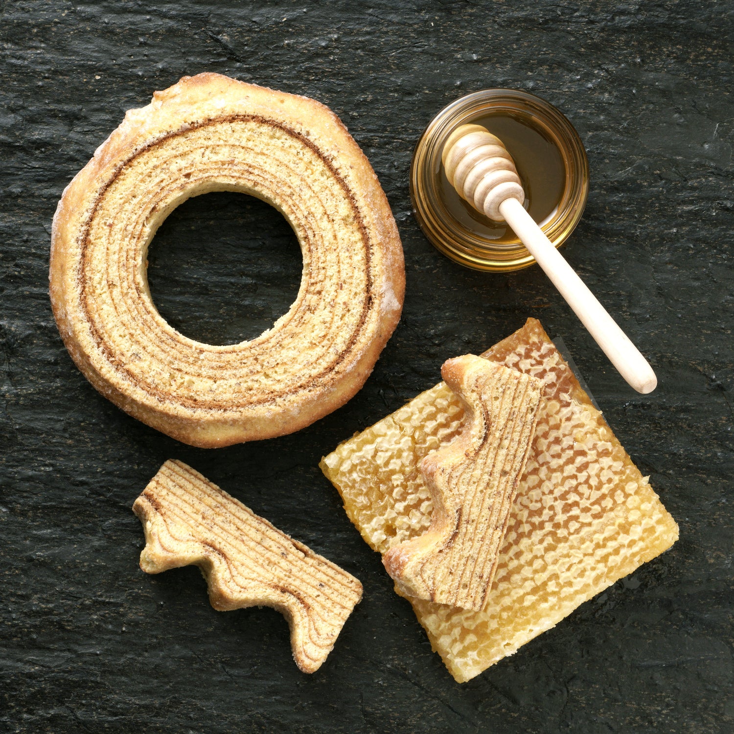 蜂蜜を使ったお菓子は、様々な焼き菓子もご用意しております。今回新登場は『花粉華のマドレーヌ』。生地やコーティングに花粉を織り込むことで、より花の香りをお楽しみいただける一品となりました。それ以外にも『フィナンシェ』『ティグレ』『バウムクーヘン』や『カヌレ』など、蜂蜜を使用した特別版もご用意しております。