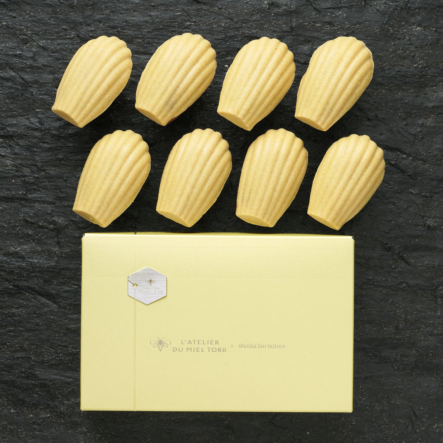 米粉・玄米粉を主原料に使用した、ショウダイビオチュールの【マドレーヌグラデーション】。やまと蜂蜜社とのコラボレーションのために新しく生まれたのは、春の花畑を思わせる、パステル調の黄色いマドレーヌです。大自然を生きる花から採取された花粉を生地とカバーリングのチョコレートに織り込むことで、蜂蜜の甘みと同時に華やかさをお楽しみいただける一品です。