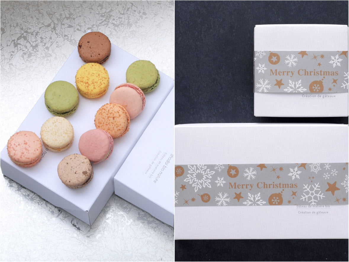 10個入り:砂糖(国内製造)、アーモンドパウダー、卵白、ホワイトチョコレート、生クリーム、バター、チョコレート、ミルクチョコレート、ブラッドオレンジピューレ、木苺、カシスピューレ、苺ピューレ、転化糖、卵黄、コーヒー豆、苺、グロゼイユピューレ、コーンフレーク、ブラッドオレンジ果皮、柚子果汁、ピスタチオペースト、柚子ペースト、洋酒、食塩、コーヒーエキス(コーヒー、砂糖)、カカオ豆、抹茶、茶葉、レモン果汁、全粉乳、シナモン/着色料(クチナシ黄、クチナシ赤、クチナシ青、コウリャン)、香料、乳化剤、ゲル化剤(ペクチン)、酸味料、(一部に乳成分・卵・りんご・オレンジ・アーモンド・大豆を含む)